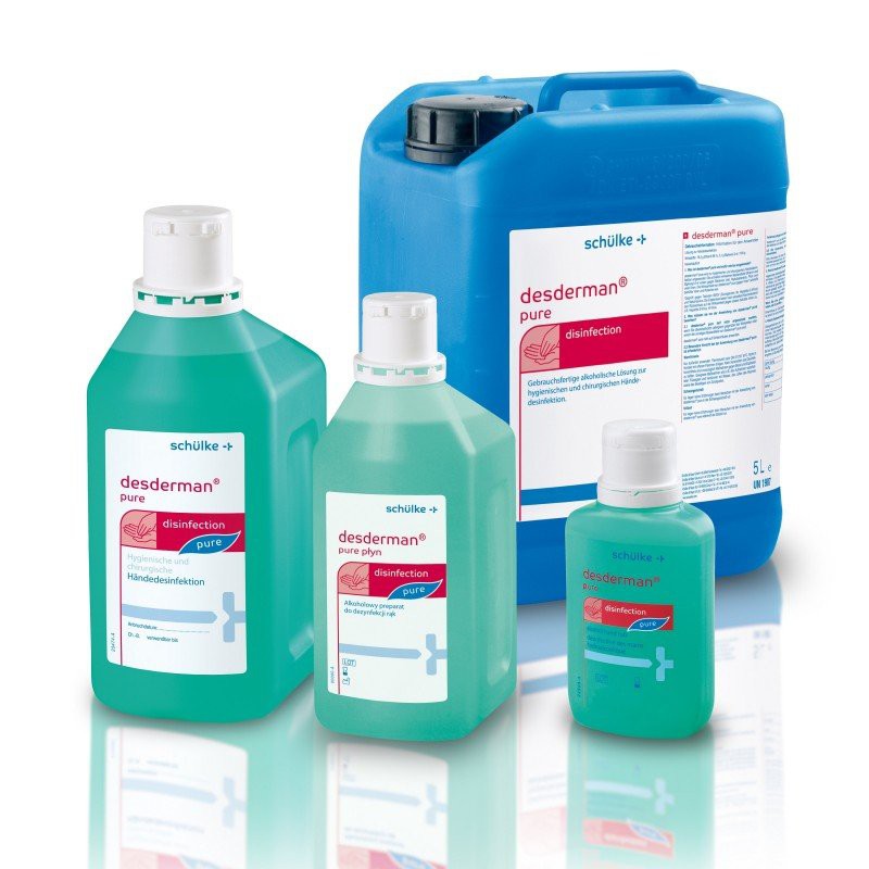 Alkoholowy preparat w postaci płynu Desderman Pure przeznaczony jest do higienicznej i chirurgicznej dezynfekcji rąk. Zapewnia czystość dłoni bez ryzyka podrażnienia skóry. Unikalna formuła gwarantuje natychmiastową dezynfekcję i długotrwałą ochronę dla skóry. Zapewnia najwyższy poziom czystości w szpitalu i środowiskach ochrony zdrowia m.in. na oddziałach, salach szpitalnych i operacyjnych. Stosowanie preparatu w formie płynnej ułatwia założenie rękawiczek.